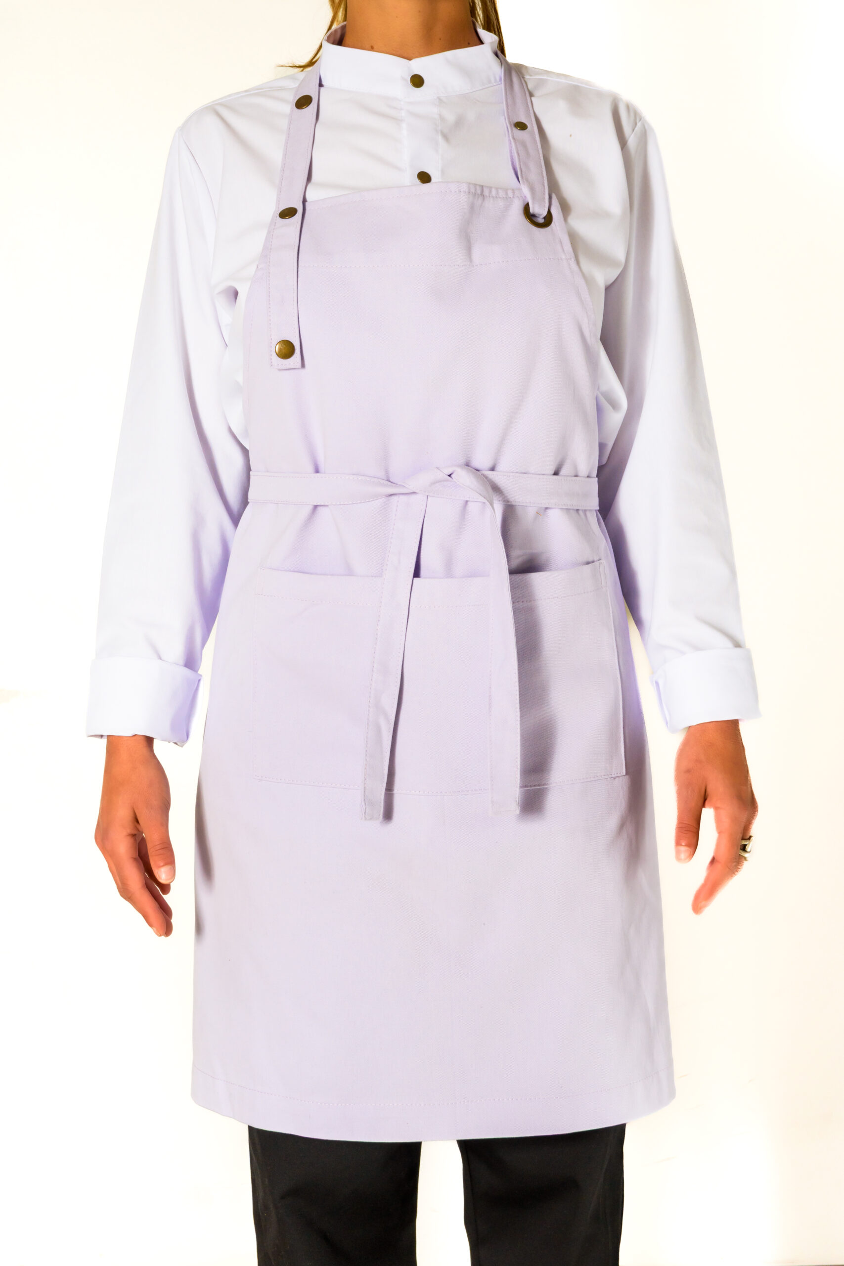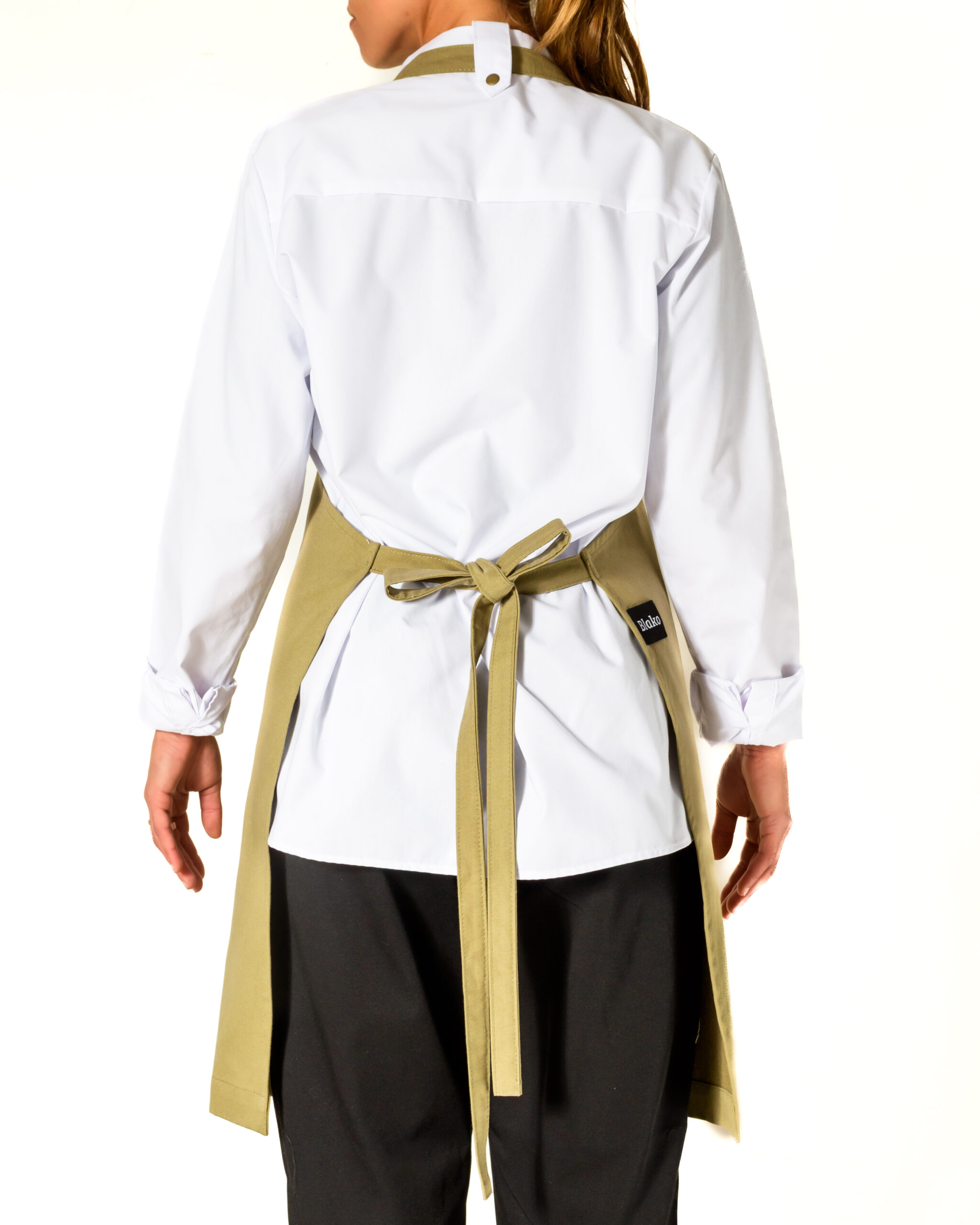 Un clásico y el más elegido para trabajos que requieren lavado intensivo. Su correa regulable con broches de bronce y bolsillo amplio en la falda aseguran comodidad y practicidad.